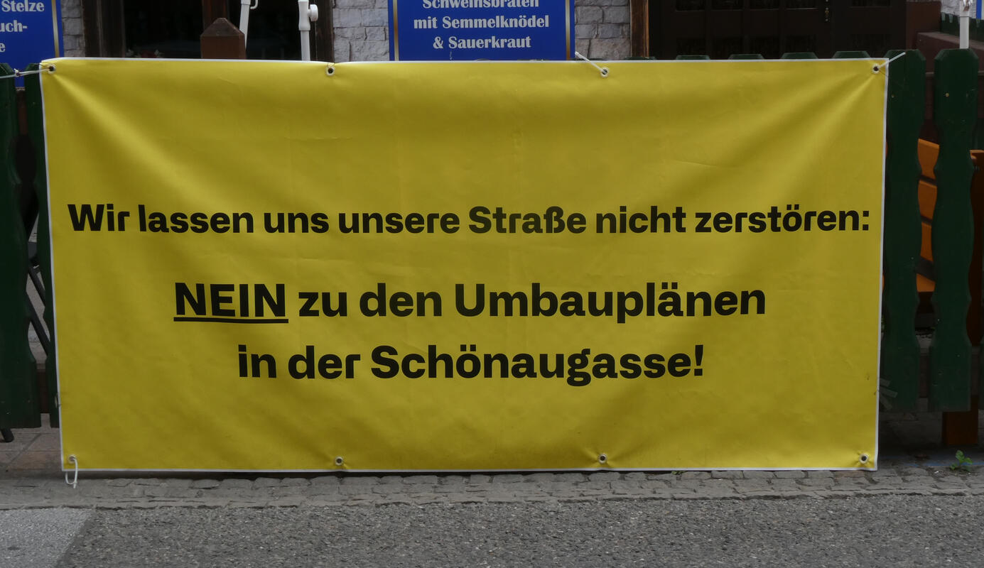 We will not let our street be destroyed: NO to the reconstruction plans in Schönaugasse!