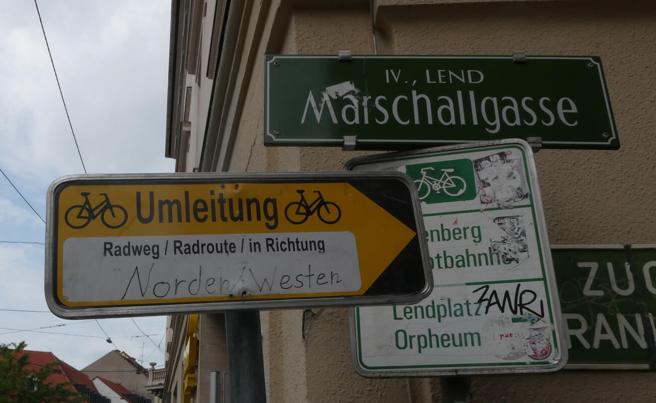 Apparently there is a plan to change this one-way street into a one-way street going the opposite direction, with a lot of protest by the people living there. I happened to go down the street on the way to Jakominiplatz: