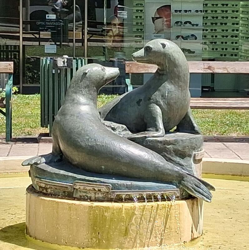 I walked from there to the Augarten, and saw a sculpture that I had not noticed before, along with a couple of sand pits being set up for some event: