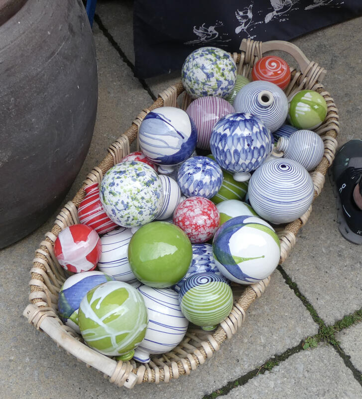 I did make one purchase: a bowl in Asian style, with a place to rest one’s chopsticks. The person who made these is from France; he called it a «Marie Claude», after the person who suggested that he make such a bowl. I thought it was a great idea, since it’s considered rude in Japan to stick the chopsticks upright in the rice, and with the bowl, you don’t need a separate chopstick rest.