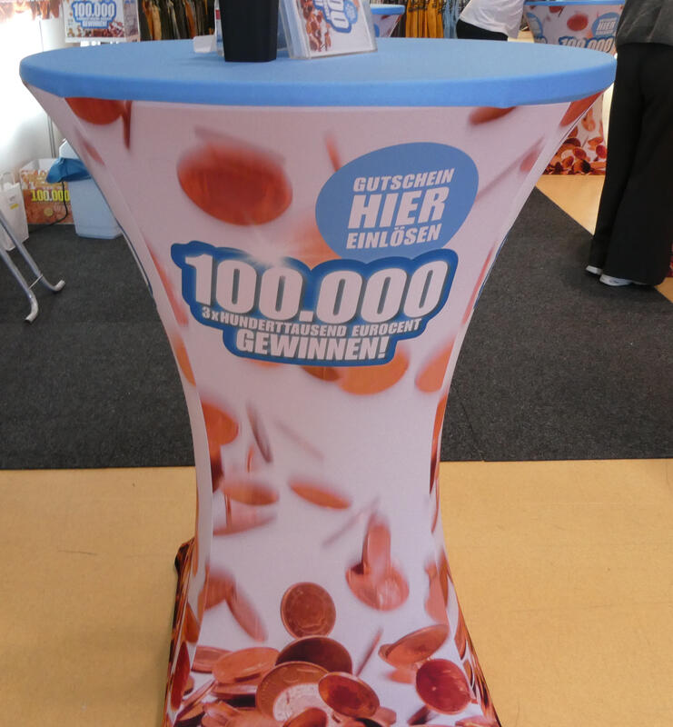 This was a contest with three prizes of 100,000 Euro...cents, which works out to 1,000 Euro. Not bad, but this seems somewhat misleading advertising. I asked the person at the booth if the prize would be given as individual one-Euro-cent pieces. They said no, it would be 1,000 Euro by bank transfer.