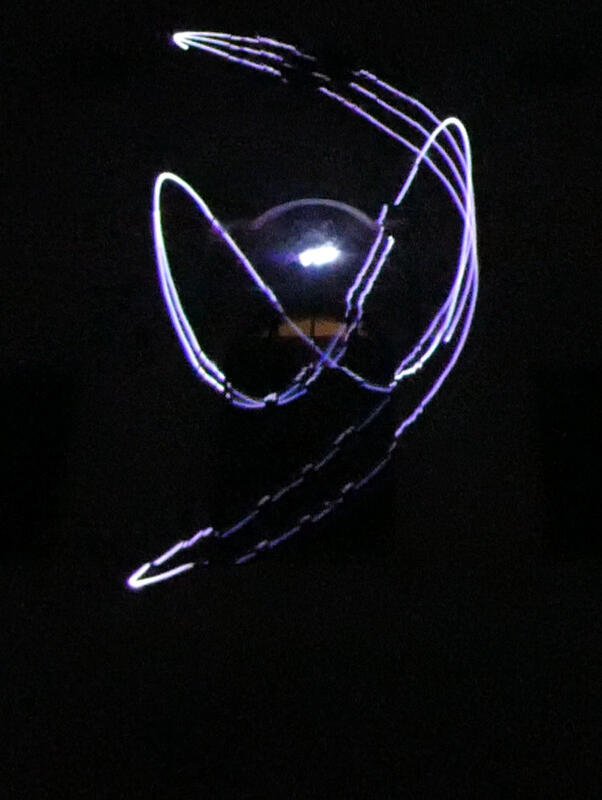 „Frequenzen“ (#12). I wasn’t particularly keen on this one. It seemed to be a light beam drawing a Lissajous figure controlled by the amplitude and frequency of the sound.