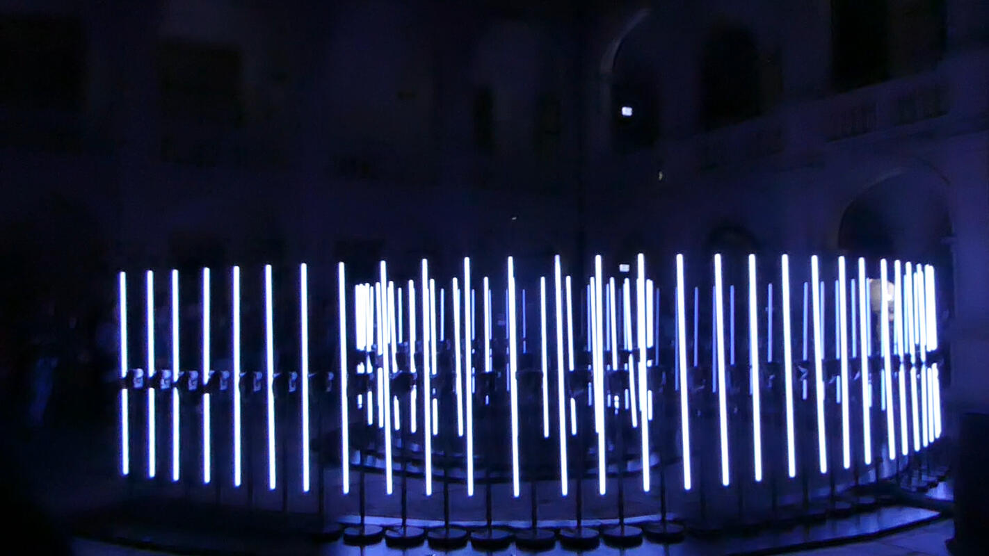 „Flux“ (#13): This was the absolute highlight for me. The rods rotate and change color in time to the music. If you look at the second video, you will see that they move really fast. I was thinking, “I sure hope they tested this so that the rods don’t fly off into the crowd.”