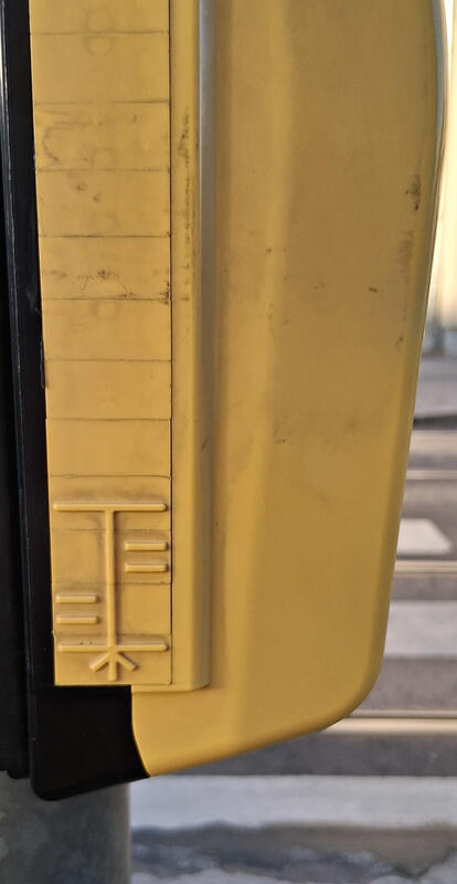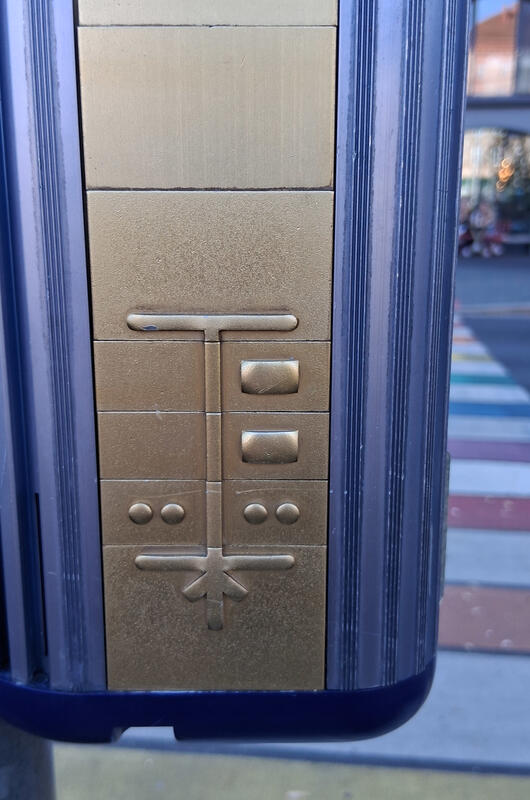 I mentioned soon after arriving in Graz that the city is not very wheelchair-accessible. However, for visually impaired people, they do a much better job. There are boxes at most intersections that have a button you can press to signal that you want to cross. On the side of the box is a “map” of the intersection for visually impaired people: