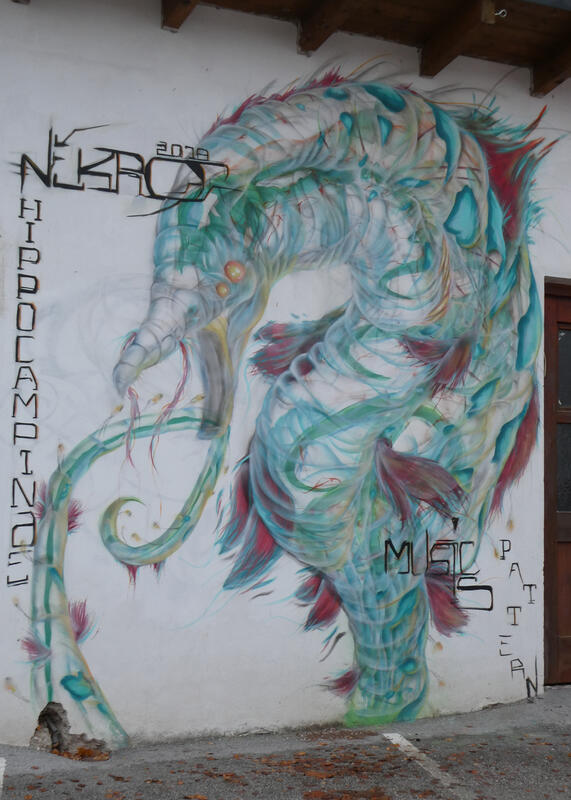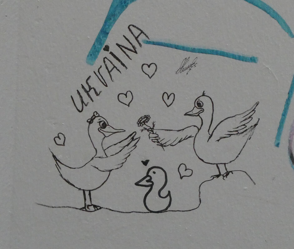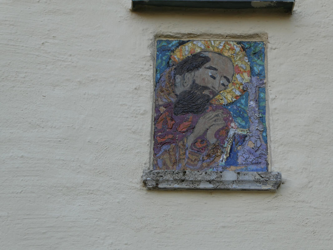 Back down at ground level. Here are some paintings on a building where they sell women’s dresses. (The text rhymes in German: )
