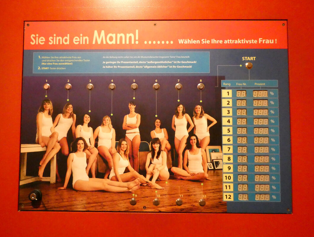 If you are a man, you choose the most attractive woman. When you make your choice, the display shows what percentage of people have chosen each person.