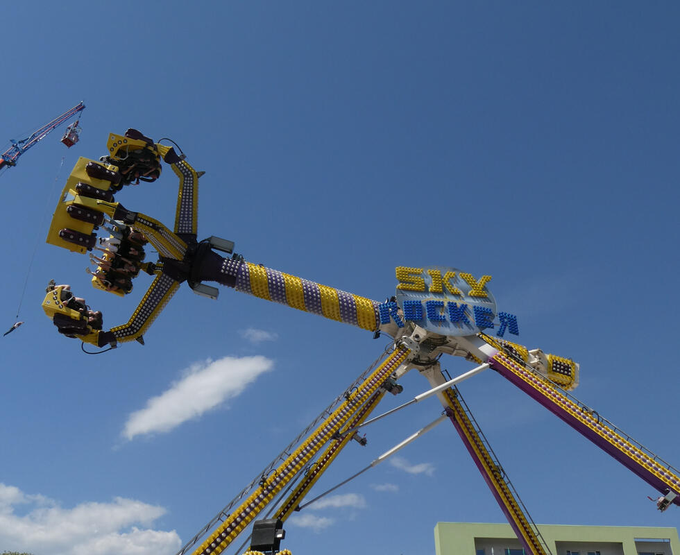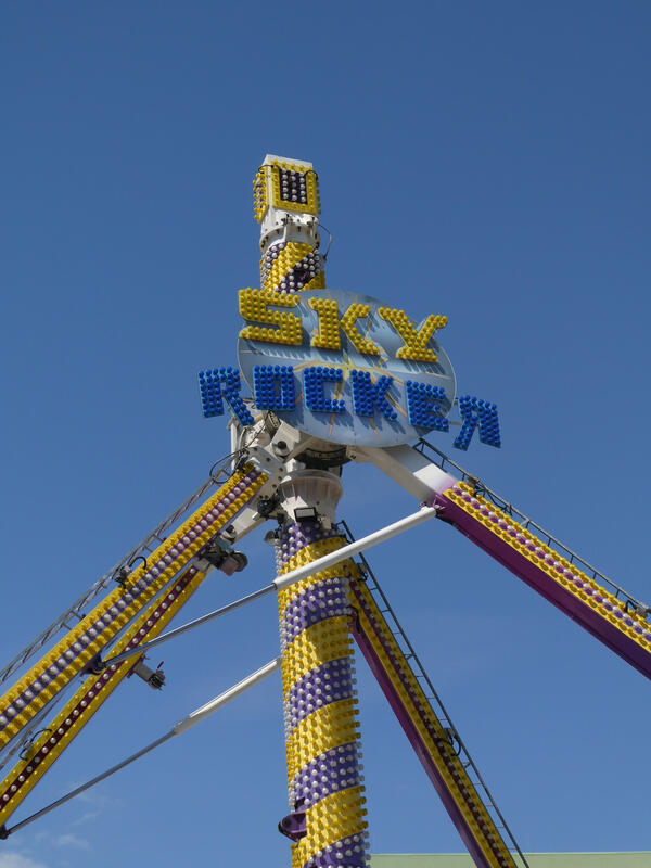 I went to the Spring Fair today. It was spread across several buildings of themed exhibits/displays (home and garden, sport, small animal display) and an outdoor area of midway rides.