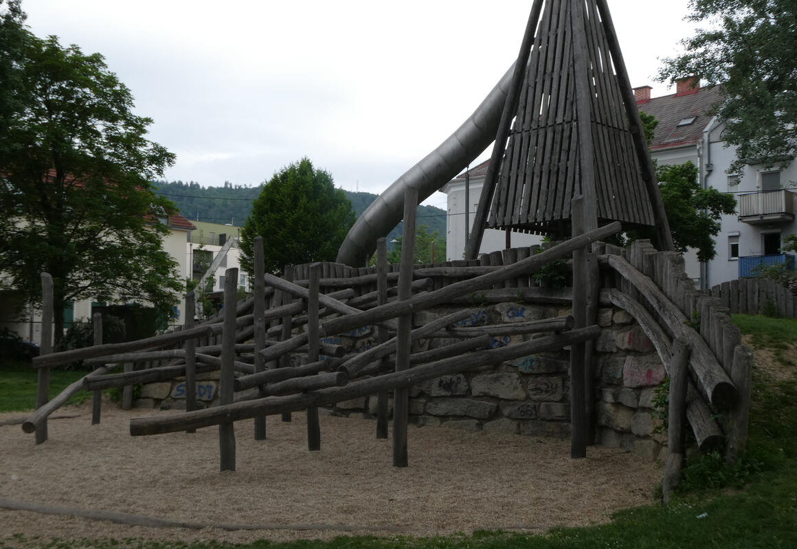 One of my friends said they might want to visit Graz with their four-year-old child. Were there any playgrounds available? There are about 70 playgrounds throughout Graz. Here’s one („Junges Europa“) that’s about two blocks from the apartment. It’s one of the larger ones; about 5700 square meters.