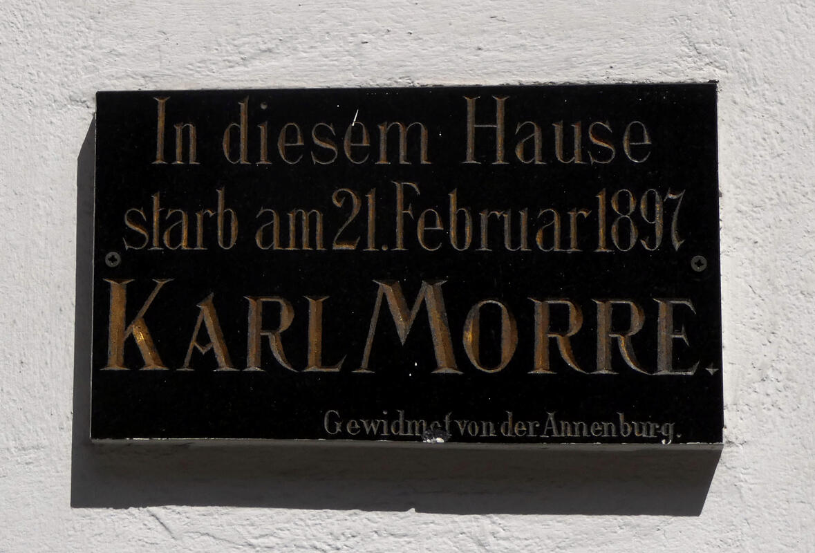 Plaque on a house: In this house, Karl Morre died on 21 February 1897. Dedicated by Annenberg. He was a poet and writer.