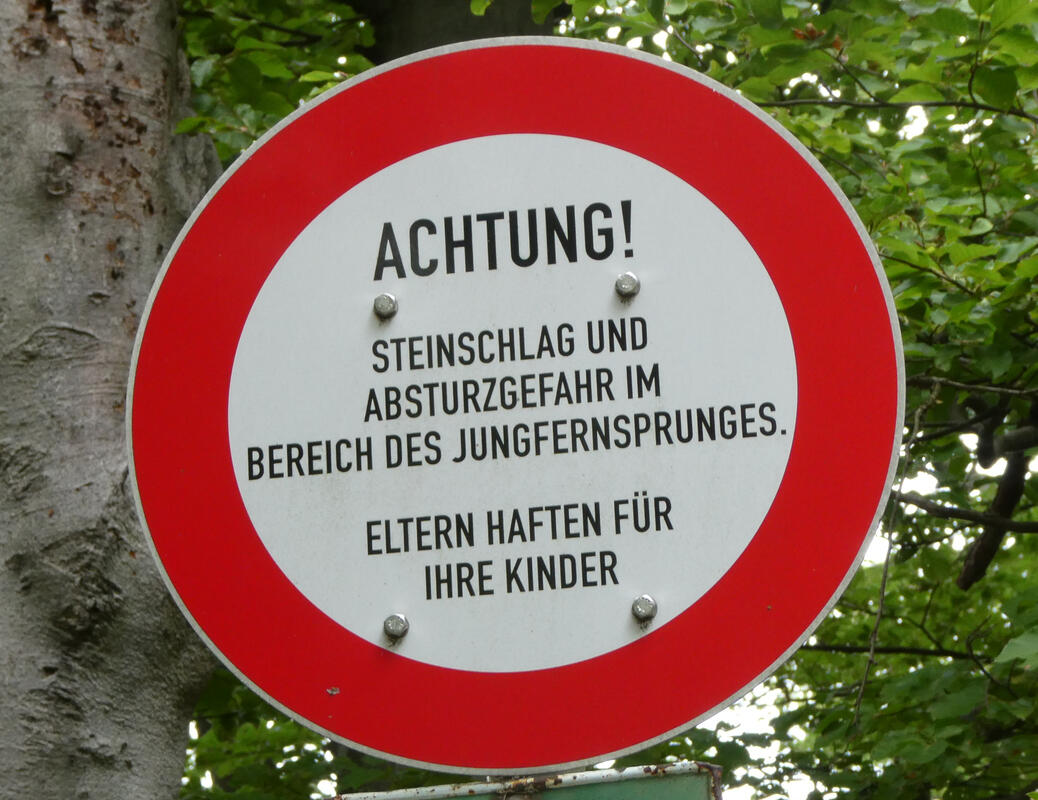 Attention! Rockfall and danger of falling rocks in the Jungfernsprung area. Parents are responsible for their children.