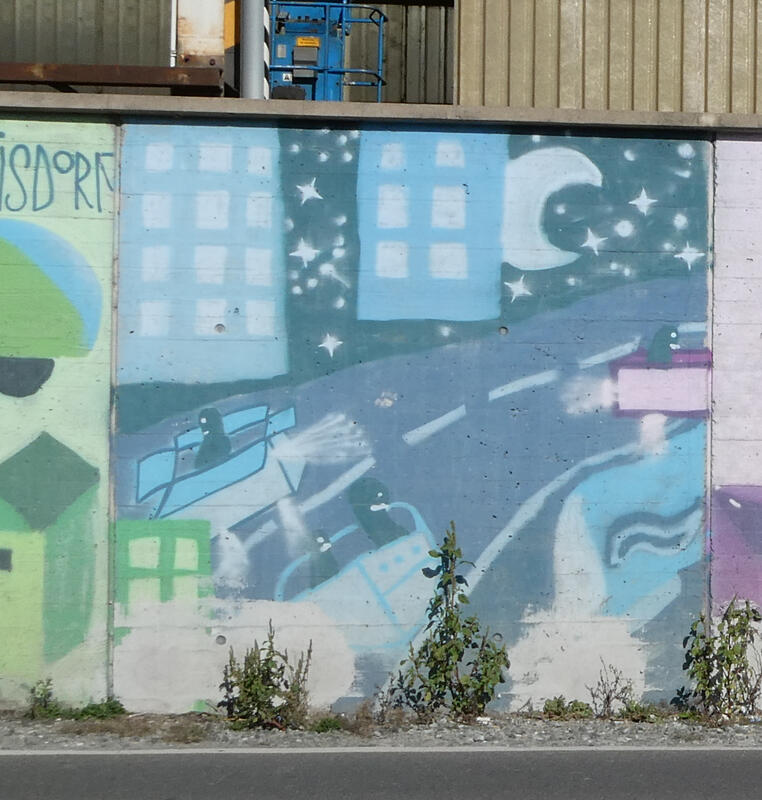 I passed these wall paintings many times on the bus during the time that the streetcar system was being updated. I finally got a chance to walk down the street and get some picctures.