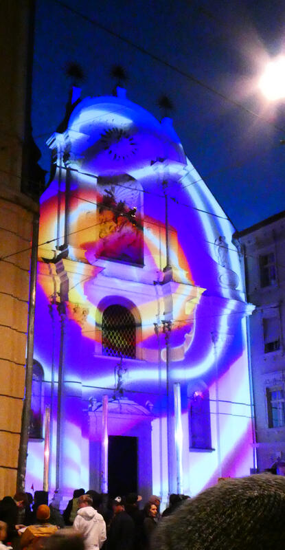 Tonight was the first evening of the 10th KlangLicht (Sound and Light) Festival. There are 16 art installations throughout the center of town. Here’s a brochure in English and in German. I made a local copy in case the versions at the main site go away.
