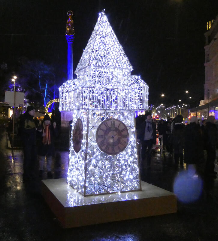 They’re putting up the Christmas decorations at the main train station. In the second photo, you see that there are no hands on the clock. At least they have taken them off; it’s better than having the time always read 13:52.