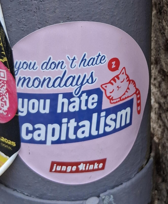 This (and other stickers) are from Junge Linke (the Young Left).