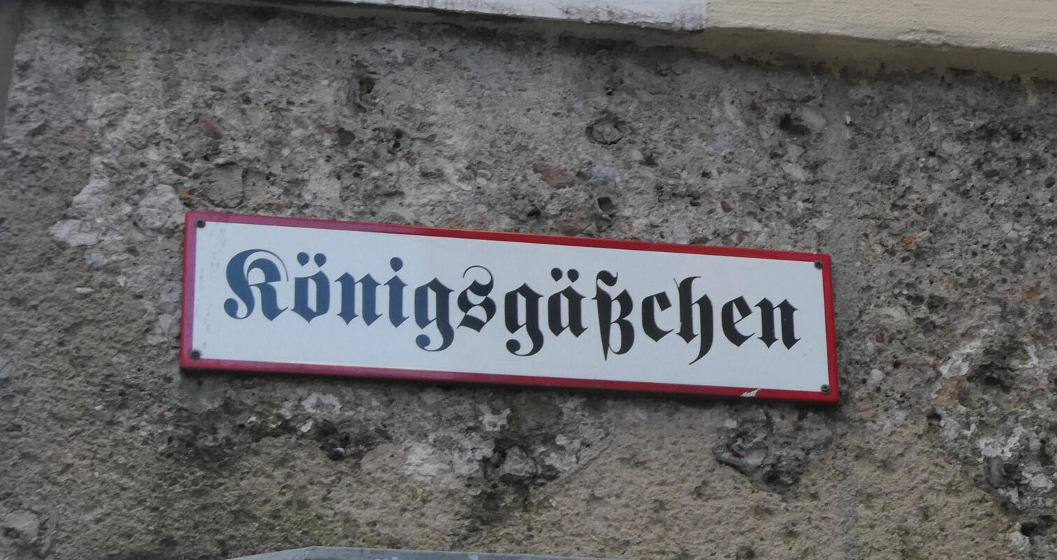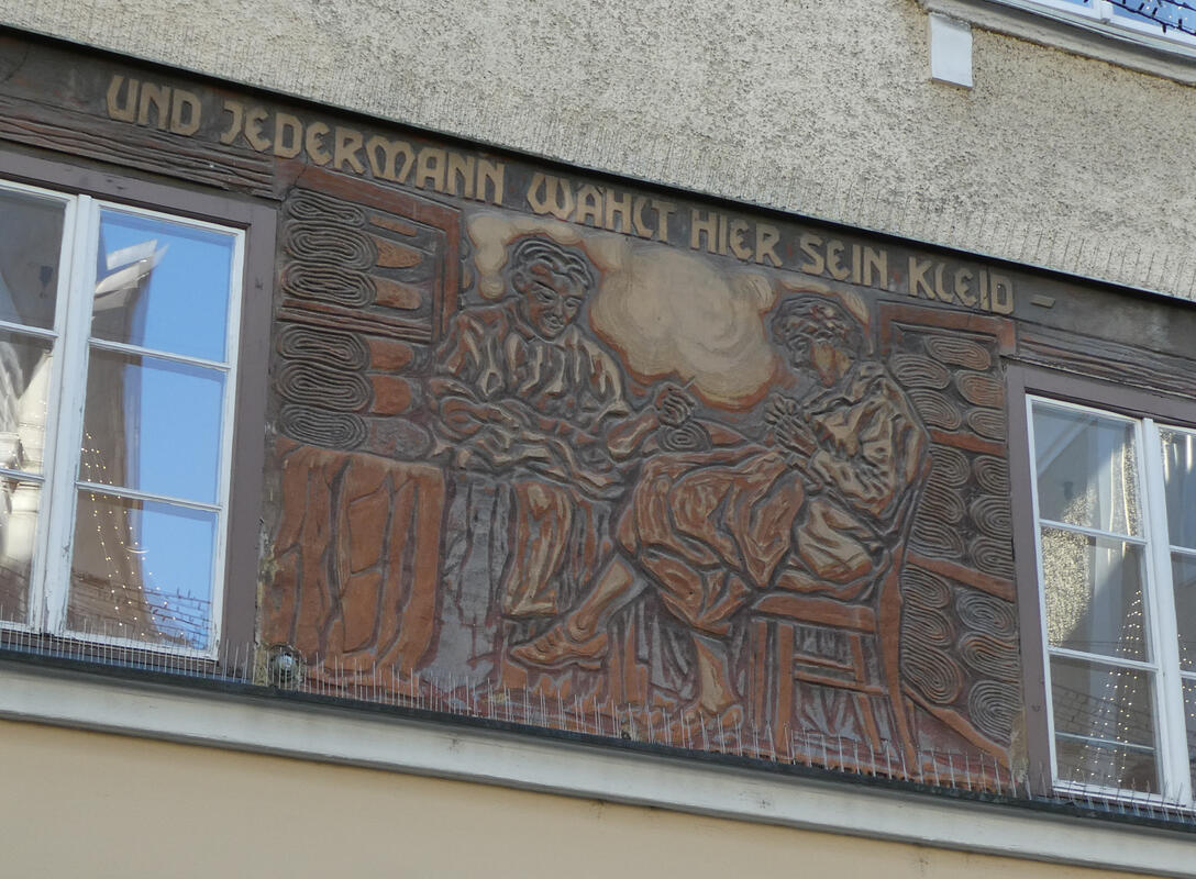 Back down at ground level. Here are some paintings on a building where they sell women’s dresses. (The text rhymes in German: )